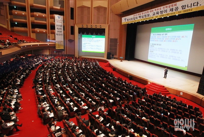 7일 오후 서울 동대문구 경희대학교 평화의 전당에서 서울시교육청 산하 교육연구정보원의 주관으로 2016 대입 정시전형 대비 학부모 진학설명회가 열리고 있다.