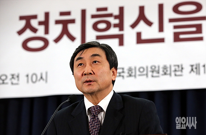 28일, 서울 여의도 국회서 '정치혁신을 위한 선거제도 토론회'에 앞서 이종걸 새정치민주연합 의원이 인사말을 하고 있다.