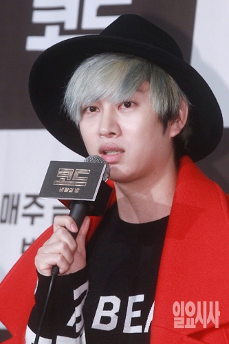 그룹 슈퍼주니어의 멤버 김희철이 29일 오전 서울 마포구 상암동 스탠포드호텔에서 열린 JTBC 새 예능프로그램 <코드-비밀의 방> 제작발표회에서 인사말을 하고 있다.