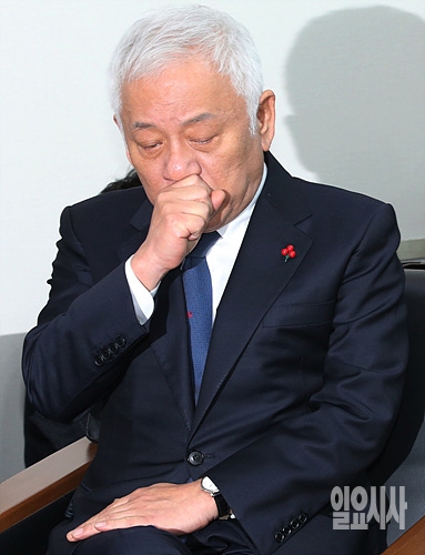 4일, 서울 여의도 국회 의원회관에서 전날(3일) 더불어민주당을 탈당했던 김한길 무소속 의원이 기자간담회 직전, 목을 가다듬고 있다.
