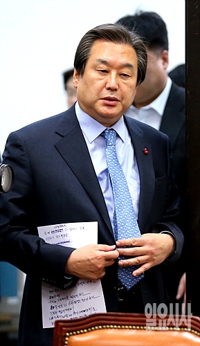 6일, 북한 수소폭탄 실험과 관련해 서울 여의도 국회서 새누리당 김무성 대표(사진), 원유철 원내대표 등이 긴급 대책회의를 위해 안으로 입장하고 있다.