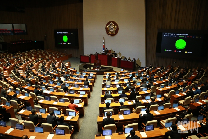 8일 오후 서울 여의도 국회에서 열린 본회의에서 북한의 제4차 핵실험 규탄 및 핵폐기 촉구결의안이 통과되고 있다.