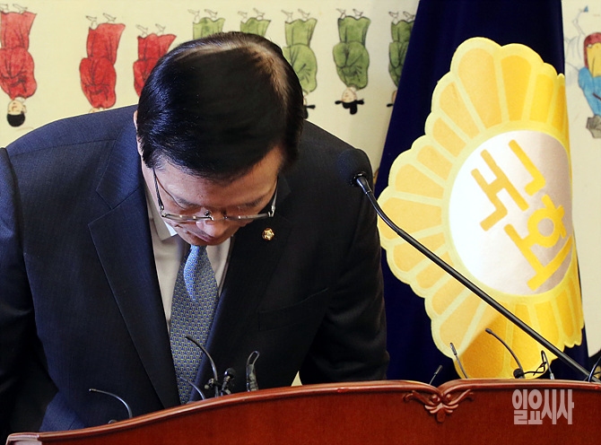21일, 정의화 국회의장이 서울 여의도 국회 의장접견실에서 국회법 개정안 관련 기자회견에 앞서 취재진에 인사를 하고 있다.