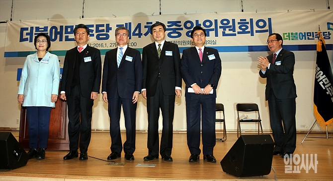 27일, 서울 여의도 국회서 열린 더불어민주당 중앙위원회의에 문재인 대표, 이종걸 원내대표 등 지도부가 참석해 있다.
