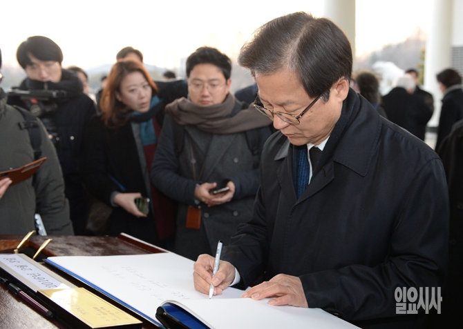 천정배 국민의당 공동대표가 3일 오전 서울 동작구 국립현충원에서 방명록을 작성하고 있다.