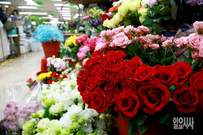 입춘이 지나며 봄기운이 완연한 가운데 11일 오후 서울 양재동 꽃시장에 꽃들이 진열되어 있다.