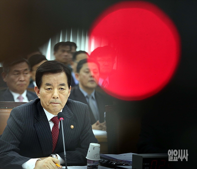 15일, 서울 여의도 국회 국방위원회 회의실에서 북핵관련 국방위 전체회의가 열린 가운데, 한민구 국방부장관이 의원들의 질의를 듣고 있다.