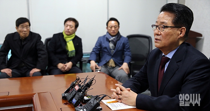 18일, 무소속 박지원 의원이 대법원의 '금품 수수 혐의' 상고심 파기환송 판결과 관련해 기자간담회에서 발언하고 있다.