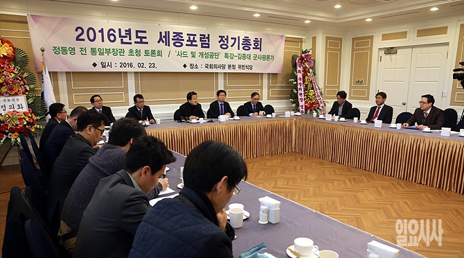 23일, 서울 여의도 국회 본청 귀빈식당서 열린 '2016년도 세종포럼 정기총회'에 국민의당에 합류했던 정동영 전 의원이 발언을 하고 있다.