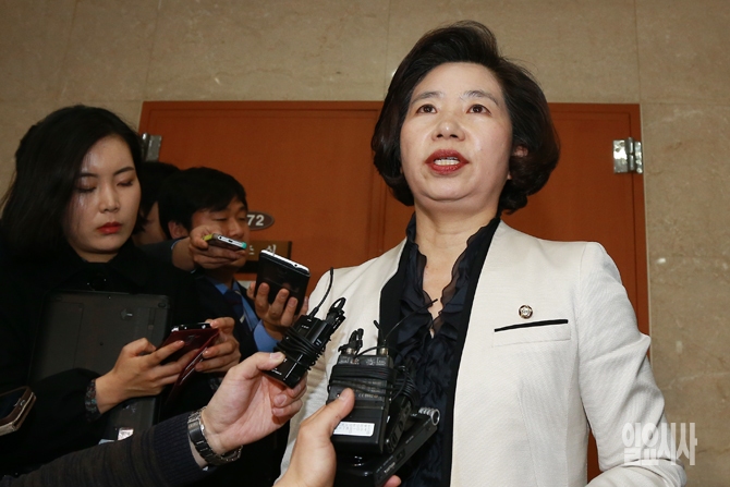 하위 20% 컷오프 명단에 포함되어 제20대 총선 공천심사에서 배제 통보를 받은 전정희 의원이 29일 오전 서울 여의도 국회 정론관 기자회견장에서 가진 더불어민주당 탈당 기자회견 후 기자들의 질문에 답변하고 있다.