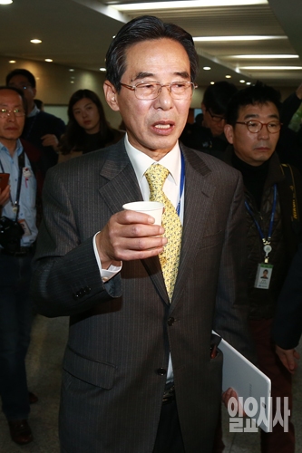 홍창선 더불어민주당 공천관리위원장이 9일 오전 서울 여의도 국회 정론관 기자회견장에서 가진 제20대 총선 1차 경선지역 발표 기자회견 후 정론관을 나서고 있다.