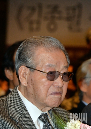 김종필 전 국무총리가 10일 서울 세종문화회관 세종홀에서 열린 '김종필 증언록' 출판 기념회에서 축사를 들으며 생각에 잠겨 있다.