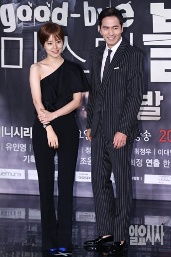 배우 이진욱(오른쪽), 문채원이 14일 오후 서울 마포구 MBC상암사옥에서 열린 드라마 <굿바이 미스터 블랙> 제작발표회에서 포토타임을 갖고 있다.