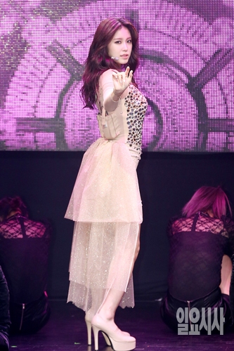 걸그룹 시크릿 멤버 전효성이 28일 오후 서울 마포구 예스24 무브홀에서 열린 두번째 솔로 미니앨범 <물들다:Colored> 쇼케이스에서 신곡 '나를 찾아줘' 무대를 선보이고 있다.