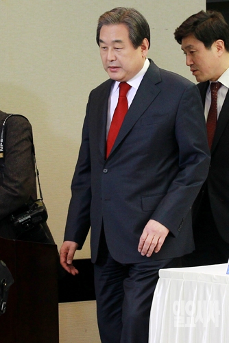 김무성 새누리당 대표가 30일 오후 서울 세종로 프레스센터에서 열린 김무성 새누리당 대표 초청 관훈토론회에 입장하고 있다.