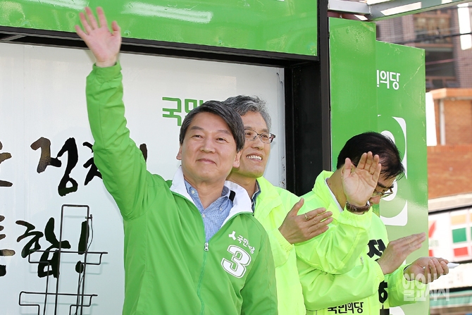 4.13 총선 선거운동이 본격화되고 있는 가운데 4일 오후 서울 성동구 금남시장 앞에서 정호준 국민의당 후보의 지원유세에 나선 안철수 국민의당 공동대표가 유권자들에게 손을 흔들어 인사하고 있다.