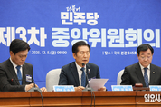 더불어민주당 정청래 대표와 김병기 원내대표가 17일 오전 서울 여의도 국회에서 열린 최고위원회의에 참석하고 있다. 이날 최고위원회의 모두발언에서 정 대표는 "내년 실시되는 6·3 지방선거에서 열린 공천 시스템으로 공천 혁명을 이룩하겠다"고 밝혔다. 그는 "국회의원도 1표, 대의원도 1표, 당원도 1표여야 한다"고 말했다. 일요시사=고성준 기자(joonko1@ilyosisa.co.kr) <joonko1@ilyosisa.co.kr>
