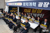 우원식 국회의장이 11일 서울 여의도 국회 의장집무실에서 열린 ‘개혁진보 4당 정치개혁 연석회의 면담’에서 기본소득당 용혜인 대표(왼쪽부터), 조국혁신당 조국 대표, 진보당 김재연 상임대표, 사회민주당 한창민 대표와 공동요구안을 들고 기념촬영하고 있다. 이날 면담 자리에서 공동요구안을 전달받은 우 의장은 “오늘 제안해주실 정치 개혁 요구안도 그런 방향과 맞닿아 있는 것이라고 생각한다”며 “논의가 조속히 진전될 수 있도록 국회의장으로서도 역할을 다하겠다”고 이야기했다. 일요시사=천재율 기자(1000jae@ilyosisa.co.kr) <1000jae@ilyosisa.co.kr>