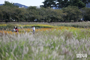 절기상 '추분'을 맞은 23일 오후 경기 시흥시 갯골생태공원을 찾은 시민들이 수크렁과 황화코스모스 사이를 거닐며 가을 정취를 느끼고 있다. 이날 기상청은 일교차가 크게 벌어져 아침, 저녁으로 서늘한 날씨가 이어질 것으로 내다봤다. 서울 한낮 최고 기온은 27도 까지 오를 것으로 예보했다. 일요시사=고성준 기자(joonko1@ilyosisa.co.kr) <joonko1@ilyosisa.co.kr>