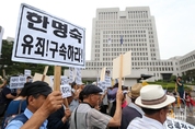 새정치민주연합 한명숙 의원의 불법 정치자금 수수 혐의에 대한 선고 공판이 열린 20일 오후 서울 서초동 대법원 앞에서 어버이연합, 엄마부대 등 보수단체 회원들이 기자회견을 열고 한명숙 의원에 대한 유죄판결을 촉구하고 있다. 일요시사=구윤성 기자(kysplanet@ilyosisa.co.kr)