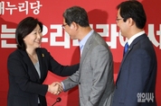 24일 오전 서울 여의도 국회에서 정의당 심상정 신임 대표가 새누리당 김무성 대표를 예방해 김학용 대표비서실장, 김영우 수석대변인과 인사를 나누고 있다. 일요시사=구윤성 기자(kysplanet@ilyosisa.co.kr)