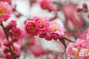봄비가 내리는 14일 오후 서울 강남구 봉은사에서 꽃망울을 터뜨린 홍매화가 봄을 알리고 있다. 기상청에 따르면 이날 예상 강수량은 서울·경기·인천 등에 5~15mm를 나타낸다. 서울 낮 최고기온은 12도 등 전국적으로 봄날씨를 보이고 있다. 일요시사=박성원 기자(psw@ilyosisa.co.kr) <psw@ilyosisa.co.kr>