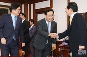 [일요시사 정치팀] 박 일 기자 = 중부권정책협의회장인 김관용 경북도지사는 21일, 국회를 방문해 조정식 국토교통위원장과 백재현 예산결산위원장을 차례로 만나 중부권의 상생발전을 위한 광역 SOC 예산확보를 촉구하는 공동건의문을 전달하고 국회 차원의 관심과 지원을 요청했다. 중부권정책협의회(회장: 김관용 경북도지사)는 11월 초, 임시회의(서면)를 통해 중부권의 상생발전을 위한 2018년도 광역 SOC 관련 국비예산 확보를 강력히 촉구하는 공동건의문 채택에 합의했다. 공동건의문은 중부권 7개 시도의 2018년도 SOC사업 예산 감축에 대한 심각한 우려 표명과 국토 균형발전의 핵심이며 지역 간 격차 해소를 통한 지역 발전의 기반이자 지역 일자리 제공 차원에서 SOC사업이 원활히 진행되어야 한다는 뜻이 담겼다. 또 구체적으로 총 14개의 사업에 대해 국회 차원의 국비 예산확보를 건의하는 내용을 담겼다. 14개의 광역 SOC사업에는 광역 철도망 구축 관련으로 중부권 동서내륙철도 조기건설 등 8개 사업, 고속도로 건설 관련으로 동서3축, 5축, 6축 고속도로 조기건설 등 4개 사업, 고속전철망 구축 관련 장항선 복선전철 조기건설 등 2개 사업이 포함돼있다. 이번 공동