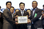 더불어민주당 정원오 서울시장 후보(가운데)와 정한호 서울도시정비조합협회 이사장(왼쪽)이 13일 오후 서울 강남구 건설회관에서 열린 '정원오 서울시장 후보자 초청 정비사업 정책 간담회'에서 정책제안서를 전달하며 기념촬영을 하고 있다. 일요시사=고성준 기자(joonko1@ilyosisa.co.kr) <joonko1@ilyosisa.co.kr>
