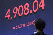 코스피가 장중 4900선을 넘어선 가운데 19일 오후 서울 여의도 한국거래소 홍보관 전광판에 코스피 종가 4908.04 포인트를 나타내고 있다. 이날 코스피는 장중 4917.37까지 올라 신고가를 경신했다. 이후 4904.66으로 마감됐다. 일요시사=천재율 기자(1000jae@ilyosisa.co.kr) <1000jae@ilyosisa.co.kr>