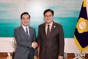 우원식 국회의장(오른쪽)과 박홍근 기획예산처 장관이 31일 오후 서울 여의도 국회에서 만나 사진 촬영을 하고 있다. 지난 24일 여야 합의로 인사청문회 청문경과보고서가 채택된 박 장관은 이재명 대통령의 임명안 재가로 25일 공식 취임했다. 일요시사=천재율 기자(1000jae@ilyosisa.co.kr) <1000jae@ilyosisa.co.kr>