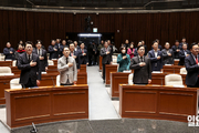 국민의힘 장동혁 대표와 송언석 원내대표를 비롯한 의원들이 8일 서울 여의도 국회에서 열린 의원총회 및 이재명 정권 독재악법 국민고발회에서 국민의례를 하고 있다. 일요시사=고성준 기자(joonko1@ilyosisa.co.kr) <joonko1@ilyosisa.co.kr>