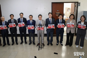 국민의힘 송언석 원내대표가 15일 오후 서울 여의도 국회에서 기자간담회를 갖고 있다. 이날 기자간담회에서 송 원내대표는 “조작기소라는 결론을 억지로 끼워서 맞추기 위해 실형을 살고 있는 대북송금 공범 이화영도 모자라서 인터폴 적색수배자, 사기범, 북한 공작원까지 총동원하는 것이 이번 국정조사”라며 “이런 무리한 국정조사가 진행될수록 대법원의 이화영 유죄 판결은 정당했다는 것이 명확해지고 있다”고 이야기했다. 일요시사=천재율 기자(1000jae@ilyosisa.co.kr) <1000jae@ilyosisa.co.kr>