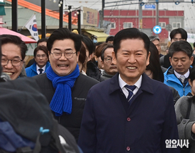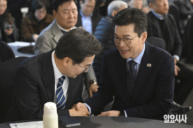 [포토] 정청래 대표, 정원오 예비후보에 '엄지 척'