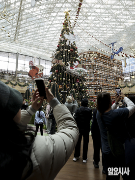 [포토] '성탄절 벌써 한 달 앞으로...' 대형 트리에 푹 빠진 시민들