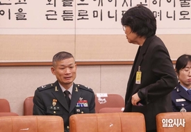 [포토] 대화 나누는 김동혁 전 검찰단장과 유재은 전 법무관리관