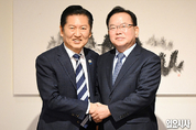 더불어민주당 정청래 대표(왼쪽)와 김부겸 전 국무총리가 26일 오전 서울 중구 달개비에서 회동 전 사진촬영을 하고 있다. 이날 정 대표는 “아무리 생각해 봐도 대구 선거를 이길 필승 카드는 김부겸”이라며 “대구에서 필요한 것, 김 전 총리께서 원하는 것이라면 무엇이든 ‘다해드림’ 센터장이 되고 싶은 심정”이라고 이야기했다. 김 전 국무총리는 “정 대표와 말씀을 나눈 다음에 제 입장 최종 발표를 드리겠다”며 “이왕 이렇게 된 거 대표한테 대구 발전·대구 경북의 미래 비전이라도 말씀드리고, 당의 의지를 확인하고 말씀드리는 게 도리라고 생각했다”고 이야기했다. 일요시사=천재율 기자(1000jae@ilyosisa.co.kr) 사진=국회사진기자단 <1000jae@ilyosisa.co.kr>