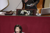 국민의힘 나경원 의원이 9일 서울 여의도 국회에서 열린 제429회국회(정기회) 제16차 본회의에서 '가맹사업거래의 공정화에 관한 법률 일부개정법률안이 상정되자 필리버스터(무제한토론)을 하고 있다. 일요시사=고성준 기자(joonko1@ilyosisa.co.kr) <joonko1@ilyosisa.co.kr>