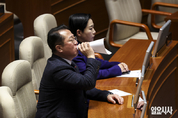 국민의힘 장동혁 대표가 9일 서울 여의도 국회에서 열린 제429회국회(정기회) 제16차 본회의에서 송언석 원내대표와 대화를 나누고 있다. 일요시사=고성준 기자(joonko1@ilyosisa.co.kr) <joonko1@ilyosisa.co.kr>