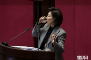 국민의힘 나경원 의원이 9일 서울 여의도 국회에서 열린 제429회국회(정기회) 제16차 본회의에서 '가맹사업거래의 공정화에 관한 법률 일부개정법률안이 상정되자 필리버스터(무제한토론)을 시작했다. 이후 나 의원이 물을 마시고 있는 모습. 일요시사=고성준 기자(joonko1@ilyosisa.co.kr) <joonko1@ilyosisa.co.kr>
