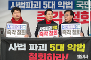 국민의힘이 10일 오전 서울 여의도 국회 본청 앞에서 더불어민주당이 추진하는 쟁점 법안을 저지하기 위한 ‘8대 악법 저지를 위한 릴레이 천막농성’을 진행하고 있다. 국민의힘은 하루 4개 조로 나눠 조당 4~5명이 번갈아 농성을 진행한다. 종료 시점은 정하지 않고 ‘8대 악법’을 저지할 때까지 이어간다고 밝혔다. 일요시사=천재율 기자(1000jae@ilyosisa.co.kr) <1000jae@ilyosisa.co.kr>